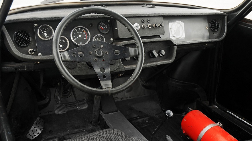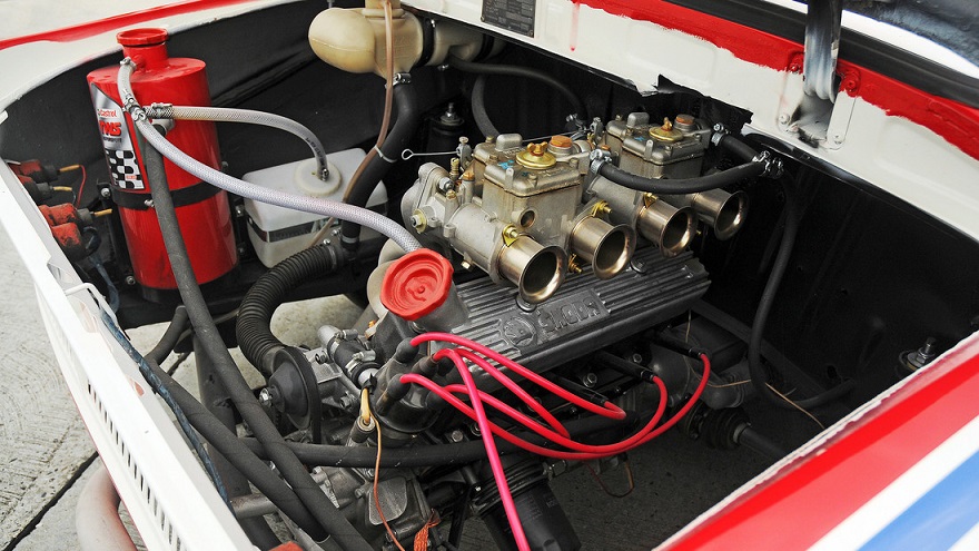 Motor pe benzină răcit cu apă, cu patru cilindri, cu mecanism de control al supapelor OHV, montat longitudinal în spatele punții spate, două carburatoare Weber 40 DCOE, ambreiaj uscat monodisc, transmisie cu patru trepte de viteză, diferențial auto-blocant, tracțiune spate