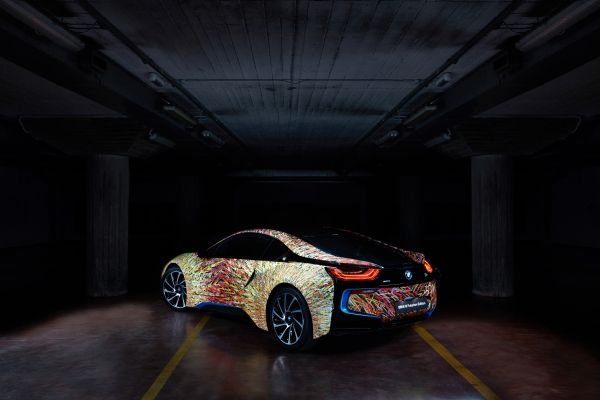 „Lampada ad Arco”, lucrarea lui Giacomo Balla, pictor şi poet asimilat mişcării futuriste, este reprodusă pe automobil. Pictura originală se află la Muzeul de Artă Modernă din New York. Opera reprezintă un stâlp de iluminat stradal, alimentată cu energie electrică, sub lumina lunii. Tehnica revoluţionară de colorare şi apariţia energiei electrice la începutul secolului XX sunt strâns legate de tehnologia viitoare BMW i8.