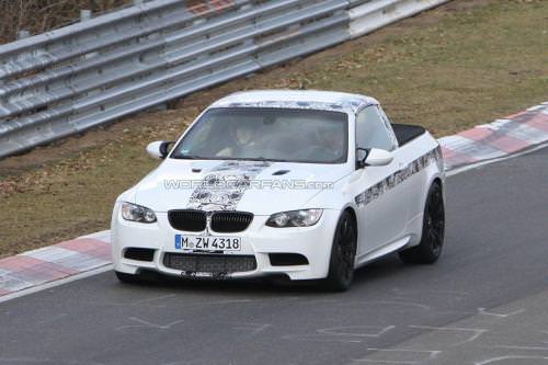 Un BMW M3 transformat într-un veritabil pickup a fost surprins ieri alergând pe pista de la Nurburgring! Este cumva vreo comandă specială pentru o firmă de construcţii de tip “Fast & Furious” sau cumva constructorul bavarez ne pregăteşte o glumă de 1 Aprilie?
