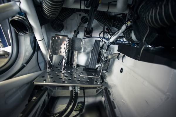 De la stânga la dreapta, pedalierul conţine: frâna pentru Zanardi, un separator, acceleraţia şi frâna pentru Glock şi Spengler şi, mult în stânga, sprijinul de picior pentru Zanardi. Pedalierul complet este amplasat mai jos decât de obicei, aspect care îl ajută pe Zanardi să frâneze.