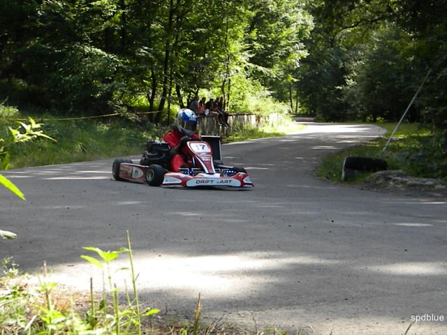 Start! Gazul jos, schimb rapid pana intr-a sasea… Vine adancitura… Bang, decolare pe care o simt destul de violent… Un mic boblaj, asez kartul pe trasa care trebuie si keep the pedal to the metal… Crosetez rapid virajele de 3, vine virajul de stanga 2 pe pod… Cumva, cumva reusesc sa gasesc un punct de franare destul de ok dar din pacate intrarea pe viraj a fost prea devreme. Arunc spatele un pic de-a latul, ”savurez” nu tocmai placut apropierea de santul de pe exterior, dar reusesc sa trec. Stiu ca urmatorul viraj e un stanga 4 care are chiar la intrare pe interior un cap de parapet. As face bine sa stau ceva mai pe mijlocul drumului… Portiunile de viteza le parcurg cu a sasea, gaz maxim. Ating limita de viteza a kartului, iar denivelarile din drum devin din ce in ce mai problematice, pe masura ce tractiunea scade. Vibratiile devin puternice, trebuie sa ma ridic putin in scaun pentru a putea scapa de vibratiile din ochi si cap. Vine portiunea de final, cu infamul sant de pe dreapta si viraje de 3… Surprinzator, gasesc o trasa foarte buna si trec ca glontul prin ele… Ultimul stanga 2 pe pod… Hmm, din pacate puteam sa-l iau mai bine (atacat prea rapid)… Trec linia de sosire, dau drumul la ventilator si ma opresc langa tabela cu rezultate… 2 minute,18 secunde, 7 zecimi! Ouch, hai ca mi-a iesit… Ii numar pe cei cu timpi mai buni din fata mea… Sunt pe 5 la general… Uraaaa!