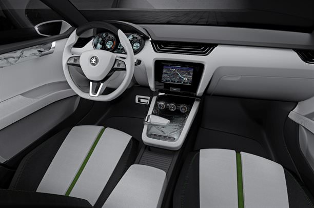 Odată cu lansarea noului concept cehii şi-au relansat şi logo-ul. Săgeata înaripată de pe capota noului model, este acum mult mai mare, verdele natural a fost înlocuit cu Verde Skoda, iar cromul este prezent din plin în grafica acestuia.