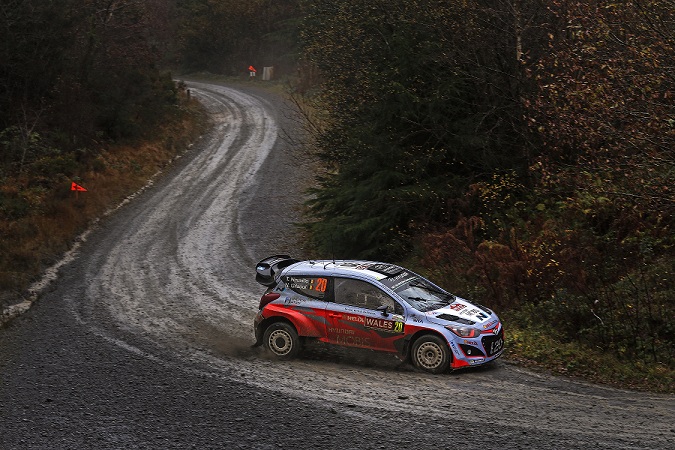Dani Sordo (#7 Hyundai i20 WRC) este cel mai bine clasat pilot Hyundai Motorsport, ajungand pana pe pozitia a patra in clasament dupa PS9 (Gartheiniog 2). O problema minora la transmisie a dus insa la oprirea motorului si la o coliziune cu un banc de pamant pe speciala a 10-a (Dyfi 2), Dani Sordo si Marc Martí, copilotul sau, pierzând astfel doua pozitii. Dupa o evolutie buna pe probele de dupa amiaza, Dani Sordo a terminat ziua pe locul cinci, la 14 secunde de pilotul aflat pe pozitia a patra.