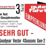 Anvelopa all-season de la Goodyear, Vector 4Seasons Generation-2, a fost apreciată de revista auto de top germană, Gute Fahrt[1], pentru excelenta sa performanță, în special în ceea ce privește menținerea aderenței pe carosabil umed și uscat. Aceasta se poate lăuda acum că este “învingătoarea testului” și singura anvelopă care a primit calificativul Sehr Gut – (foarte bine) al revistei1. Recunoașterea oferită de Gute Fahrt este doar cea mai recentă dintr-o serie de rezultate foarte bune la teste care aduc recunoaștere tehnologiei avansate și dezvoltării inginerești de excepție marca Goodyear, beneficii de pe urma cărora va profita, începând cu aprilie 2016, și segmentul SUV.