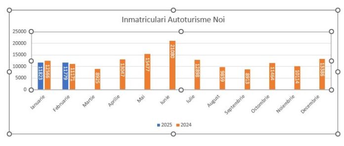 - În primele 2 luni din 2025, înmatriculările de autoturisme noi au atins 23.602 unități, cu o scădere de doar -0.6% față de perioada similară a anului 2024.