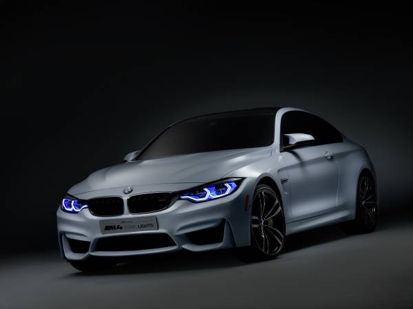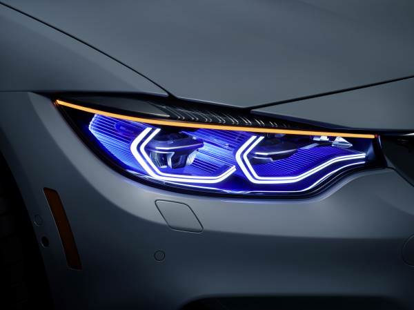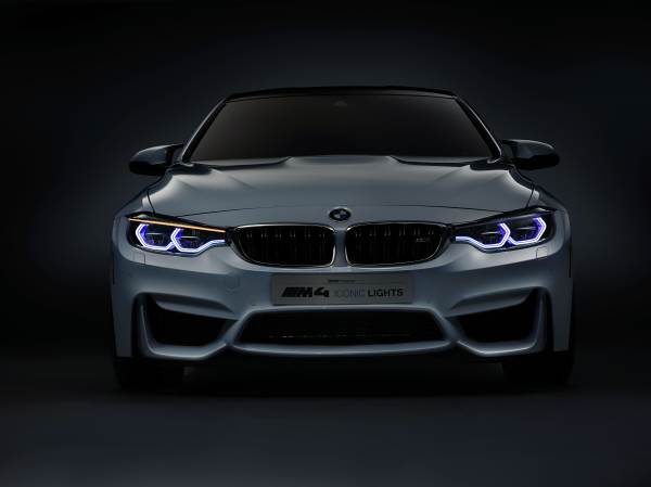 Iluminarea este un element important al designului automobilelor moderne. Din faţă, toate automobilele mărcii BMW sunt recunoscute imediat prin combinaţia de faruri rotunde duble şi emblematica grilă a radiatorului. Noaptea, cele patru inele „corona” strălucitoare formează o semnătură distinctivă. Modelul BMW M4 Concept Iconic Lights prezintă o nouă interpretare a temei farurilor rotunde duble. Farurile dispun de tehnologie laser, care se evidenţiază atractiv prin benzile LED fine de culoare albastră când automobilul este în mişcare. Datorită noii tehnologii laser, a fost posibil ca farurile să beneficieze de un design plat, sculptural.