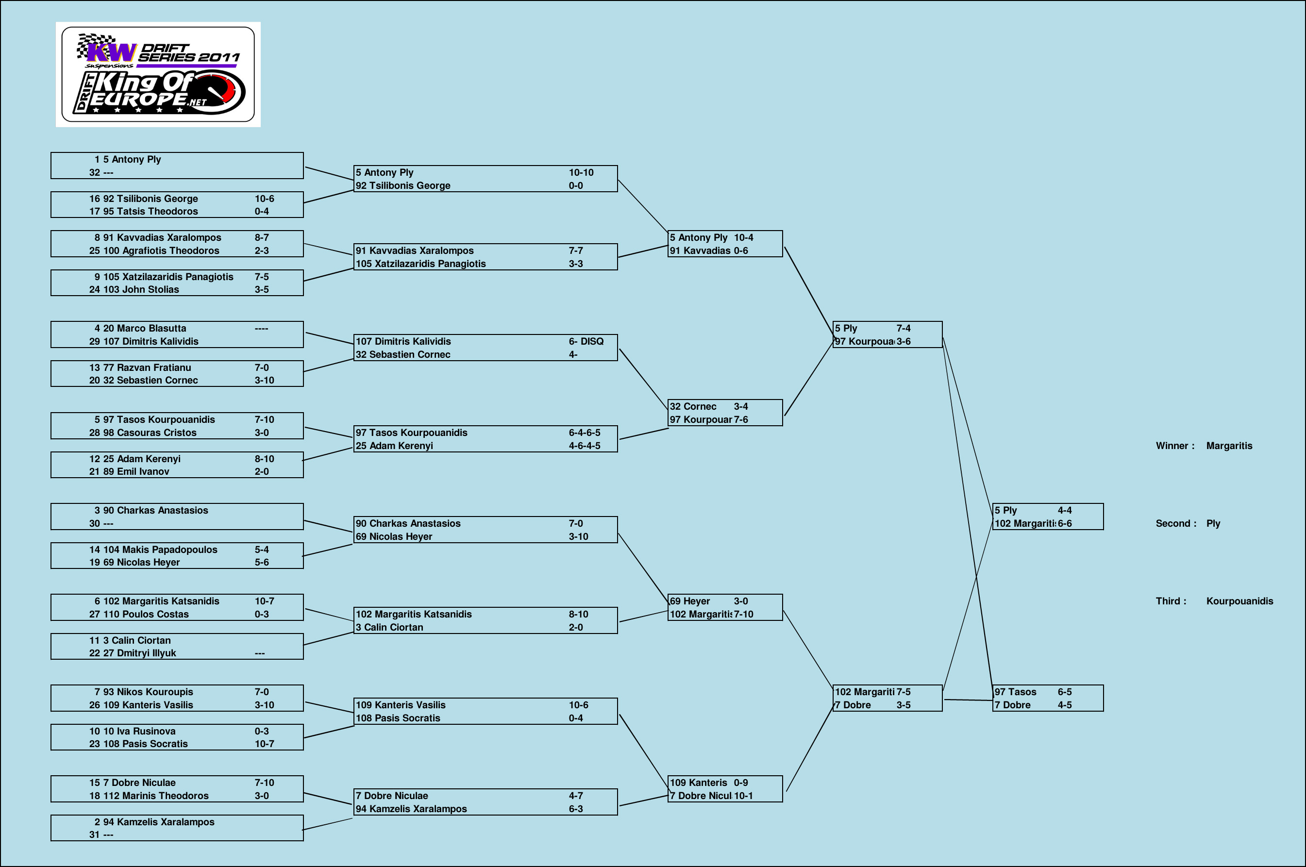 Razvan Fratianu, a reusit sa ajunga in Top32 unde a fost eliminat de catre Sebastien Cornec, iar Calin Ciortan a pierdut in fata castigatorului aceste etape, in duelurile din Top16.
