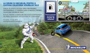 Campania LA DRUM CU MICHELIN, PENTRU A CASTIGA CĂLĂTORIA VISURILOR TALE oferă fiecărui participant care întruneşte condițiile de participare un premiu garantat sub forma unui voucher de carburant şi îi invită pe toţi utilizatorii de internet sa descopere un joc online cu premii.