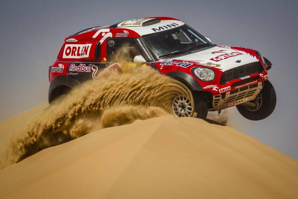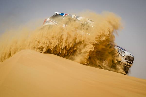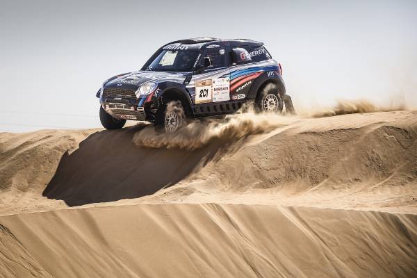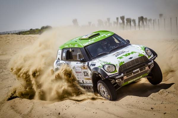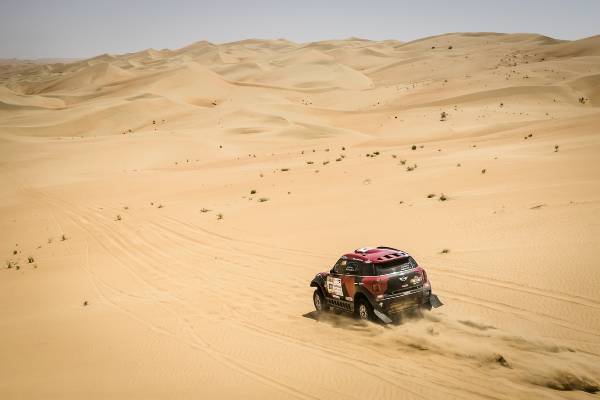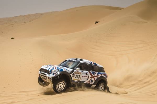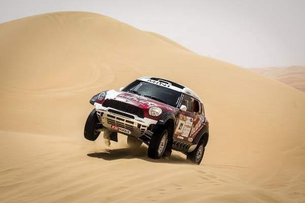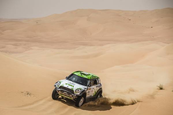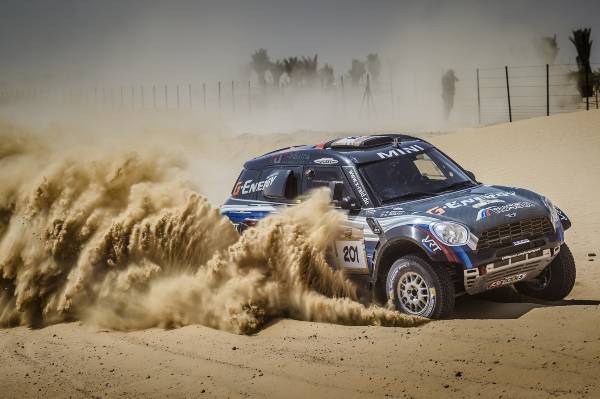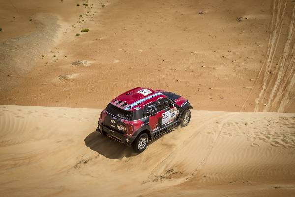 A 25-a ediţie a Abu Dhabi Desert Challenge (27 martie – 2 aprilie) a fost a doua etapă din Cupa Mondială FIA pentru Raliuri Cross-Country 2015 şi s-a dovedit imediat a fi o cursă dificilă. Dunele înalte combinate cu terenul moale şi vânturile din deşert au făcut ca echipajele MINI ALL4 Racing să se confrunte cu pene de cauciuc, un accident dramatic şi o excludere neobişnuită din clasamentul final. Cu toate acestea, renumita fiabilitate a modelului MINI ALL4 Racing şi angajamentul deosebit al echipajelor au permis obţinerea unui rezultat impresionant.