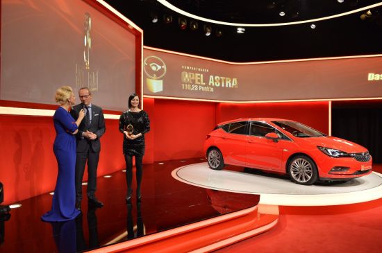 Noii vedete Opel a clasei compacte i-au fost recunoscute meritele la premiile Oscar ale industriei auto de la Berlin, unde a câştigat „Volanul de aur” la categoria autovehicule compacte. Modelul Astra, lansat la Salonul Internațional de la Frankfurt în luna septembrie, a câştigat deja acest premiu important, ceea ce îl face un veritabil autovehicul de succes. Dr. Karl-Thomas Neumann, CEO al Opel Group şi Tina Müller, CMO, au participat la ceremonia care a avut loc la Axel-Springer-Haus, primind premiul de la redactorii şefi Marion Horn (Bild am Sonntag) şi Bernd Wieland (Auto Bild). Premiul „Volanul de aur” este decernat în comun de cele două publicaţii. Un juriu alcătuit din cititori, experţi şi celebrităţi, cum ar fi Walter Röhrl, o legendă a curselor auto, alege cele mai bune modele noi ale anului după efectuarea unor teste extinse.