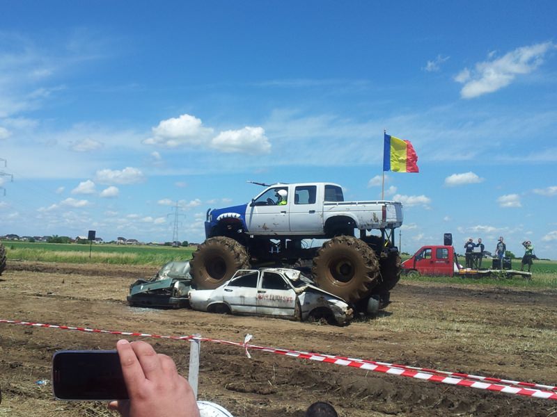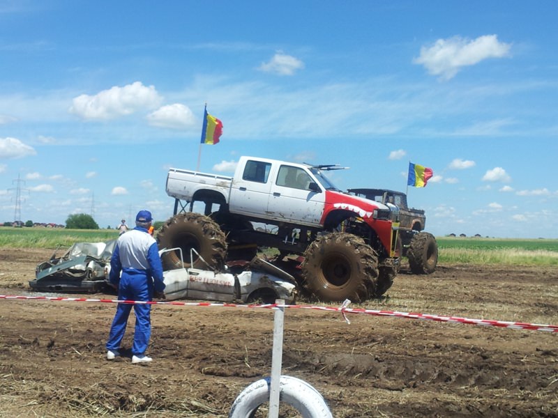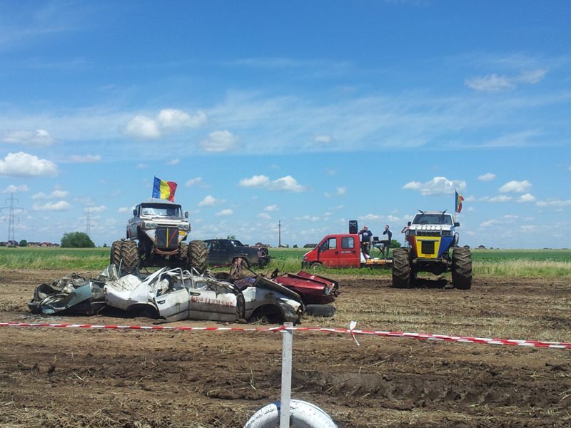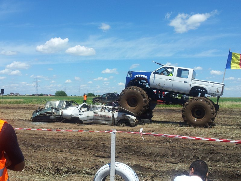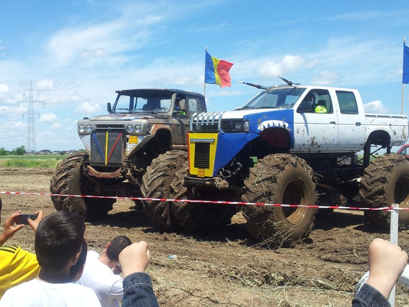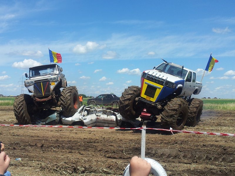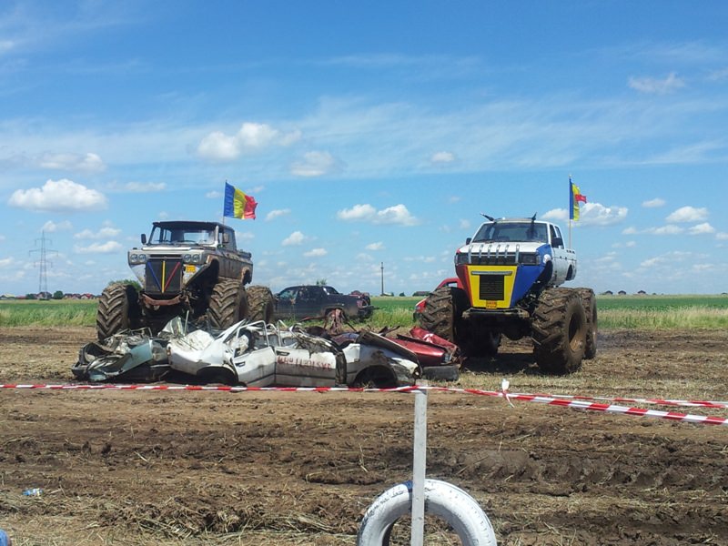 Doi bucuresteni pe numele lor Tudor Robert si prietenul sau Marius au dezvaluit publicului primele Monster truck-uri 100% Romanesti. Dupa aproximativ 10 luni de munca asidua si peste 40.000 de euro investiti, astazi au vazut lumina zilei si a bliturilor acesti doi monstri pe 4 roti, care ne-au incantat intr-o demonstratie de forta undeva la marginea comunei Berceni, pe un teren amenajat special de catre cei doi si cu putin ajutor din partea naturii, care a oferit apa din belsug in ultimele zile.
