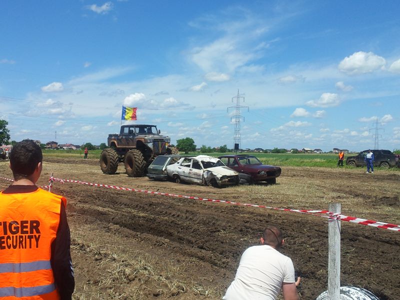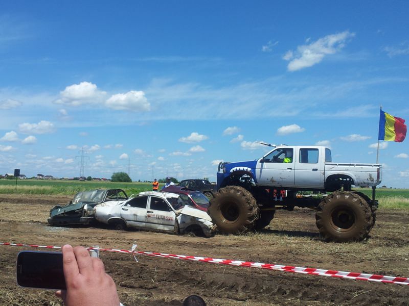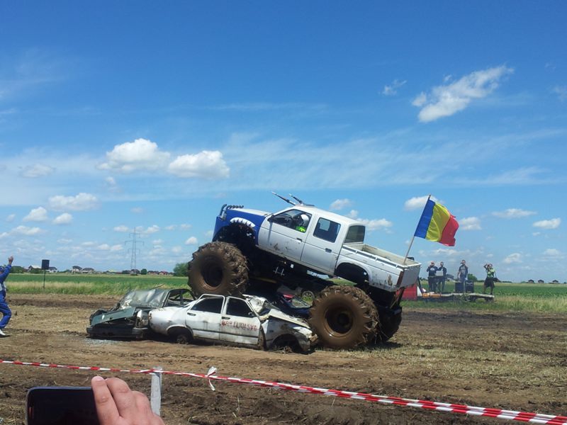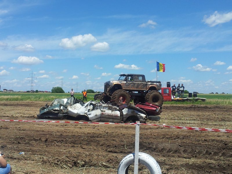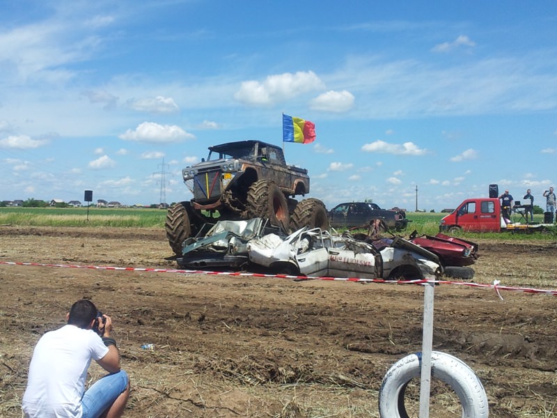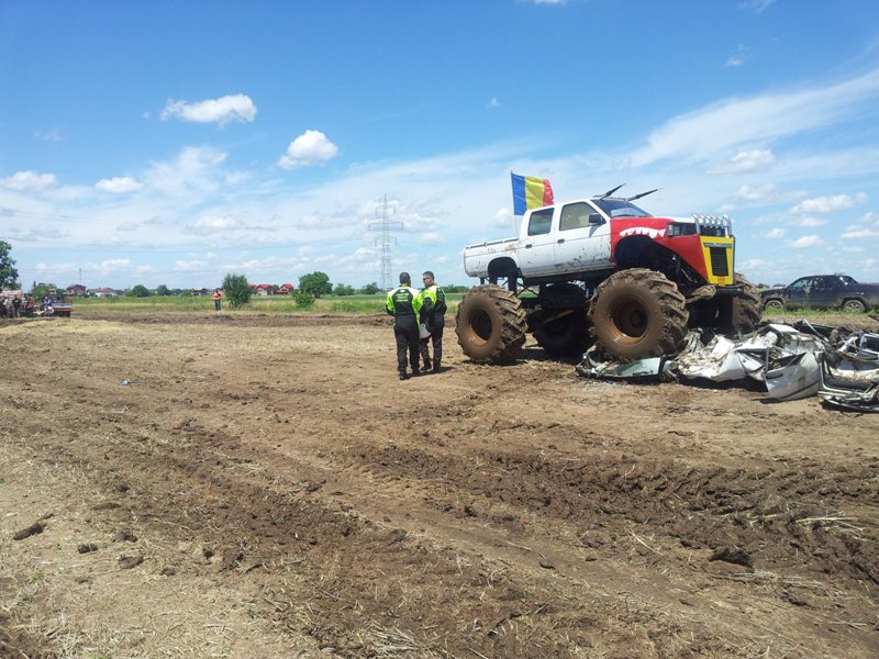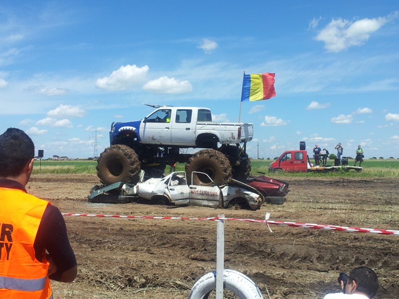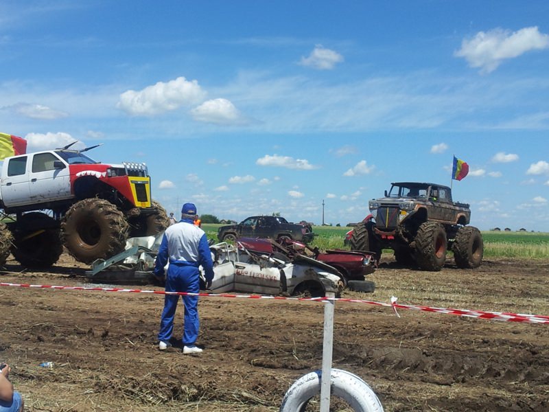Doi bucuresteni pe numele lor Tudor Robert si prietenul sau Marius au dezvaluit publicului primele Monster truck-uri 100% Romanesti. Dupa aproximativ 10 luni de munca asidua si peste 40.000 de euro investiti, astazi au vazut lumina zilei si a bliturilor acesti doi monstri pe 4 roti, care ne-au incantat intr-o demonstratie de forta undeva la marginea comunei Berceni, pe un teren amenajat special de catre cei doi si cu putin ajutor din partea naturii, care a oferit apa din belsug in ultimele zile.