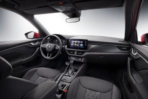Panoul de instrumente cu elemente de decor noi şi panourile uşilor frontale dispun de o suprafaţă moale, de înaltă calitate, cu un finisaj cu granulaţie similară structurii cristalului. Această granulaţie va fi specifică şi în viitor modelelor ŠKODA. Iluminarea ambientală accentuează atmosfera plăcută de la interior şi este disponibilă în nuanţele cupru, roşu sau alb.