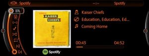 Integrarea în sistemul iDrive, pe lângă streaming audio, permite utilizatorilor să acceseze direct din maşină, într-un meniu specific sistemului, majoritatea funcţiilor Spotify – inclusiv secţiunea de playlists sau căutare.